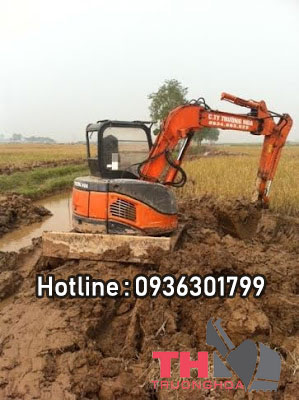 Máy xúc thi công đồn điền đổi thửa huyện Thạch thất – Hà Nội.