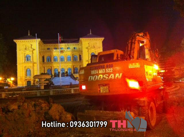 Máy xúc thi công làm đường trong Phủ Chủ Tịch Nước