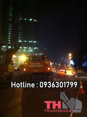 Máy xúc thi công tại đường Kim Ma Đặt đường ống nước sạch